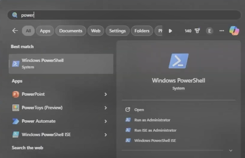 Search for Windows PowerShell (or Command Prompt) and right-click on the result. Select Run as administrator. This elevation is necessary to install system-level features like WSL.